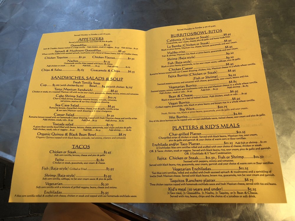 Introducing The Sea Casa, a Mexican restaurant in Westlake Village, CA, offering a diverse menu with options for pescatarians, vegans, and vegetarians. The restaurant boasts a range of amenities from delivery and takeout to outdoor seating and happy hour specials. Customer reviews rave about the flavorful dishes, such as the breakfast burrito, tacos, and tortas. The salsa bar and healthy options are highlighted, along with the friendly staff and quick service. With ample parking and both indoor and outdoor dining options, The Sea Casa provides a relaxed and inviting atmosphere for enjoying delicious Mexican cuisine. Whether you're in the mood for a hearty burrito or a refreshing salad, this restaurant caters to a variety of tastes while maintaining a consistent level of freshness and quality. Don't miss out on experiencing the vibrant flavors and warm hospitality at The Sea Casa.